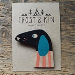 A wooden dog brooch to pin to your favourite jumper. This is hand cut and hand painted on plywood so there may be some slight variations with each brooch.