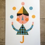 Juggler! And what a fine fellow he is! A cheerful alphabet print to brighten any wall. Hand-pulled 4 colour screen print using water based inks on lovely thick paper. This is an open edition print.